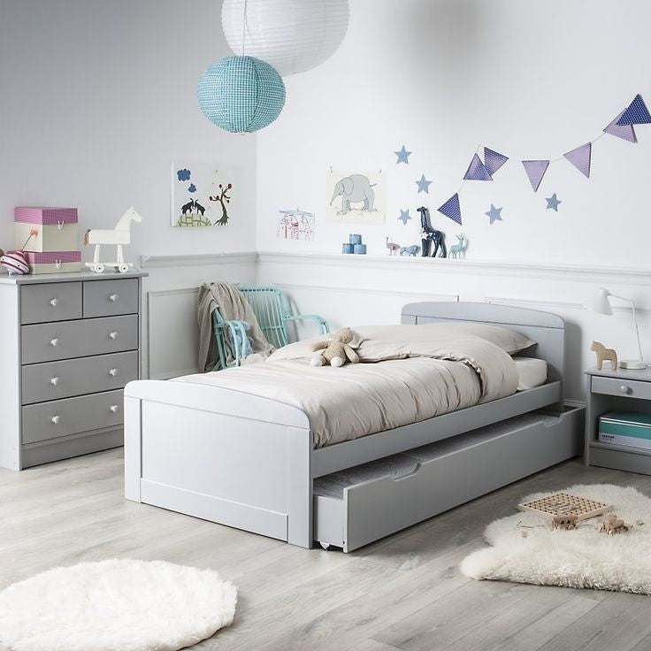 الخامات: خشب كونترالمقاسات: الطول 200 سم × العرض 120 سماللون: رمادي فاتحمميزات: السرير مزود بوحدة تخزين كبيرة يمكن استخدامها كسرير إضافيالسعر يشمل ألواح السرير المصنوعة من الخشب الموسكي
