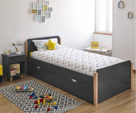 الخامات: خشب كونتر المقاسات: الطول 200 سم × العرض 120 سم اللون: رمادي غامق * بيج مميزات: السرير مزود بوحدة تخزين كبيرة يمكن استخدامها كسرير إضافي السعر يشمل ألواح السرير المصنوعة من الخشب الموسكي الطبيعي