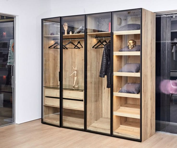 درسنج مصنوع من الخشب الطبيعي والزجاج عالي الجودةالمقاسات : عرض :180 سم ارتفاع :220 سم عمق : 45 سم اللون : بيج