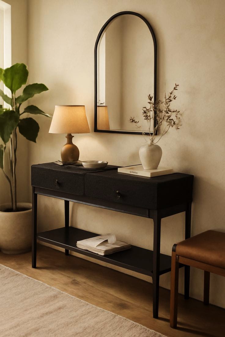 الخامات :خشب موسكي فلنديالمقاسات :العرض 125 سم العمق 35 سم الارتفاع 90 سم مقاس المرايا :العرض 50سم الارتفاع 75سم اللون: اسود