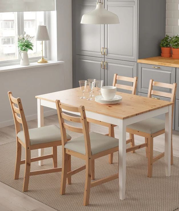 The material beech wood the color Wooden * white * gray and the color can be modified according to the customer's desire Table dimensions: Length: 120 Display: 60 Height: 80 Chair dimensions: Length: 50 Show: 41 Height: 92 Receive within 20 days
