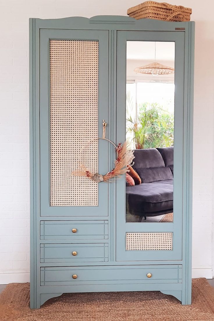 الخامات : خشب زان + رتان يدوي +خشب كونتر
